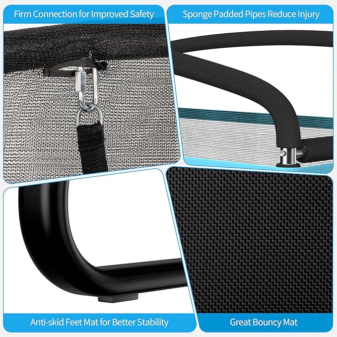 • Safety First: We always keep kids’ safety in mind. The soft foam cushion covers all the springs so that it prevents hands or feet from being caught in the gap. Moreover, the upper pipes are padded with soft foam as well, leaving you no worries about bumping into pipes by accident.