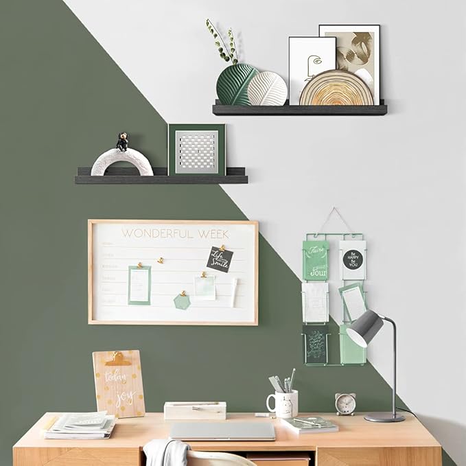 • 【Perfect solution for your walls】The picture ledge wall shelf is SAME SIZE as each other (L 23.1" x D 4.5" x H 2.2") and is such an easy way to display photos without making lots of holes in your walls. The wall shelves are crafted from Paulownia wood which are lightweight yet proportionately strong, sustainable real wood. They come fully assembled and all mounting hardware is included in the package.