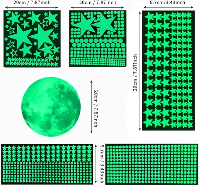 • 【Excessive Quantity】It contains a big moon and 1077 big stars, small stars and dots, which are enough to cover the whole ceiling. It can also be used to spell names, festivals or any pattern you want.