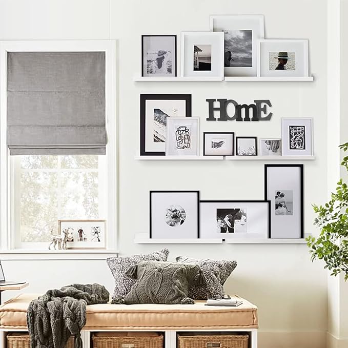 • 【Easy Installation & Breeze Disassembly】These modern & versatile white floating shelves for wall come assembled in sets of 4. Easy to install those picture shelves when open carton box to hang them following instuction manual. When disassembling, just remove screws.