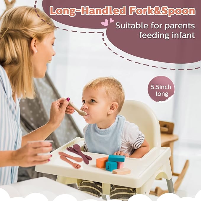 • Practical usages: baby feeding supplies can conducive to self feeding ability for baby, and the comfortable and flexible spoon and fork can also relieve baby's teething pain, babies can chew them to massage their gums
