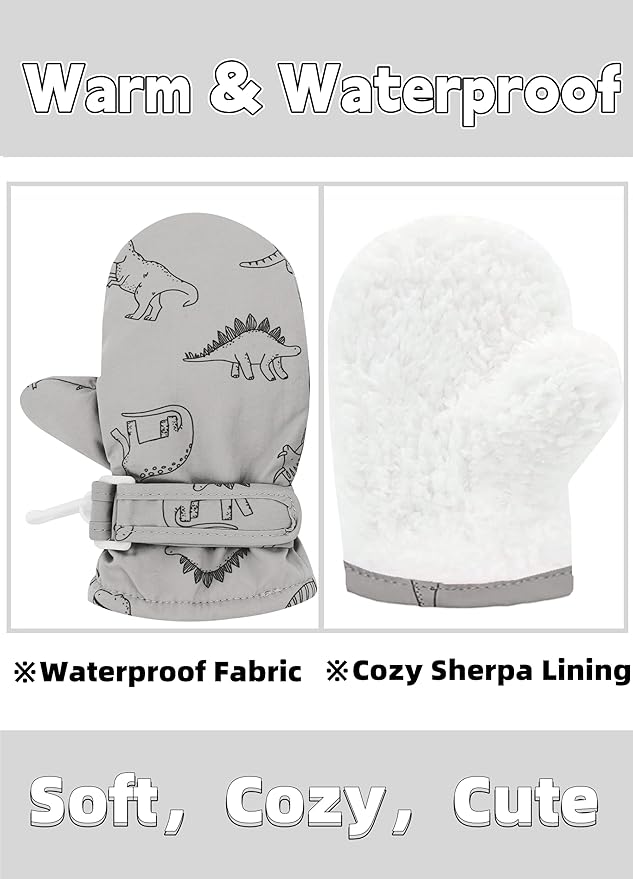 • The surface of this toddler mitten was made from high-quality waterproof acrylic fiber, ensure the soft touch and lightweight as well as breathable, make sure your little one playing in the snow all day but the inside will not get wet.