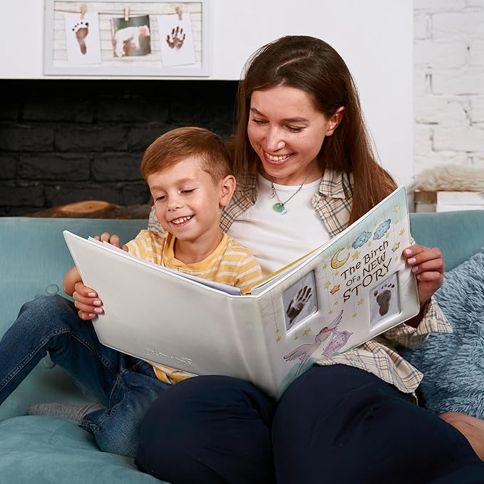 • Faux Leather Cover – Durable, attractive 12" X 12" leather-bound baby album and memory book for boys and girls; 60 pages to keep your precious memories, simple unisex memory book from baby shower up to age 5.