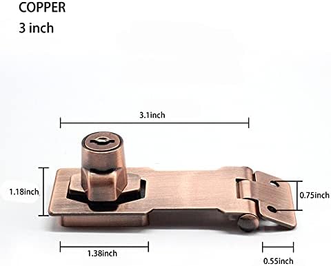 2 Packs Keyed Hasp Locks Twist Knob Keyed Locking Hasp for Small Doors, Cabinets and More,Stainless Steel Steel, Hasp Lock Catch Latch Safety Lock Door Lock with Keys (3inch, Copper)