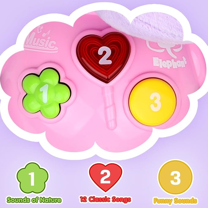 • Baby Gifts for Girls & Boys: Plush baby toys with cute elephant baby music toy designs will be more attractive to your little baby and easier to catch their eye. Is the baby's, birthday gift, Christmas gift, and other holiday gifts of choice!