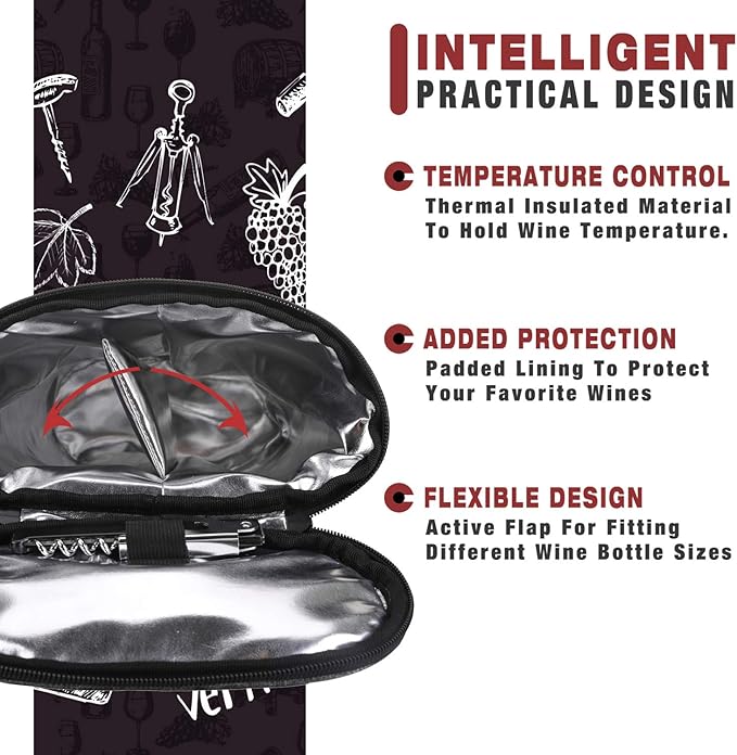 • Lightweight and portable – Compared to the cumbersome wine gift box, ALLCAMP wine travel bag is very light weight and suitable for the most standard 750ML wine bottles. It comes with an wine bottle opener to keep on hand at all times. Anytime enjoy your beverage!