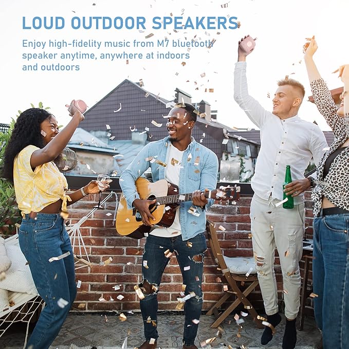 • 🌙【Bluetooth 5.0 & Wireless Stereo Pairing】: A new generation of Bluetooth 5.0 technology, transmitted by A2DP technology, has lower power consumption than Bluetooth 4.2 but with faster transmission,stronger anti-interference ability and more stable signal without any delay. Two M7 Wireless Speakers can be paired for true wireless Bluetooth playback on the left and right channels of the two M7 Bluetooth speakers.