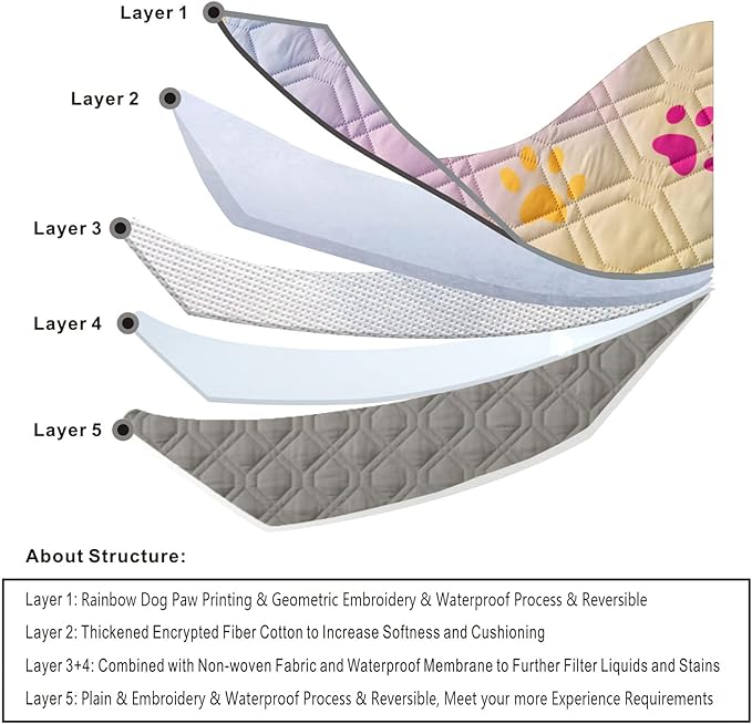 • All Rights Reserved. Imported, Product Name: Waterproof Reversible Dog Bed Covers ; Material :Multiple Material Composite(5-Layer Structure) Size:20"x30"/30"x70"/52"x82"/68"x82"/86"x82"/102"x82"/60"x80"/120"x82"Inch;Style: Geometric Embroidery + Printed + Patchwork ; Pattern Color: Rainbow Dog Paw Prted + Gray, and So On......)