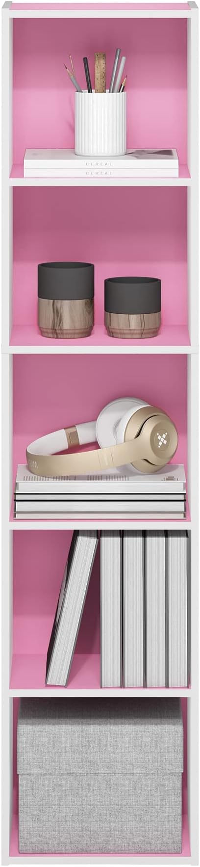 Furinno Luder Bookcase / Book / Storage, 5-Tier Cube, Pink/White
