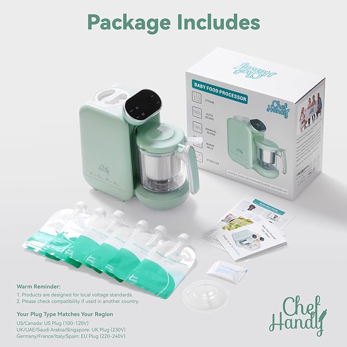 • 【Designed for Convenience with Extra Accessories】This baby food maker with steam and blend includes six baby food pouches and replacement accessories for easy storage and feeding. Built to Last with High-Quality Materials for Long-Term Use.