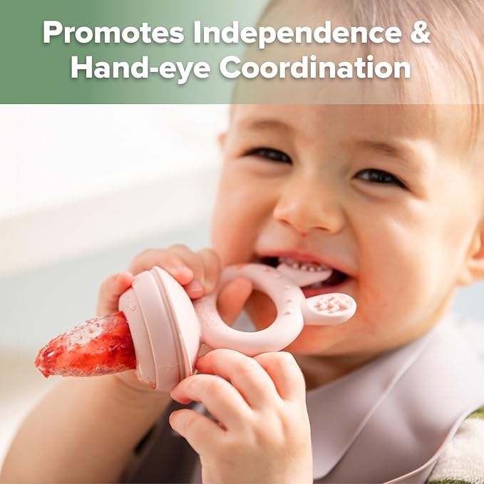 • PROMOTES INDEPENDENT FEEDING: Designed with an easy-to-hold ring suitable for tiny hands, our Feeder fosters self-feeding skills and enhances hand-eye coordination.