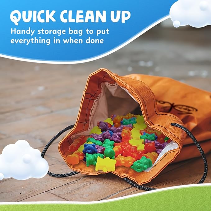 • LEARNING TOYS: Develop early math skills, count to 100, skip counting, color sorting, one-to-one correspondence, comparison, making 10, Nonstandard measurements, grouping, addition, subtraction, graphing and color recognition with this set of colorful counting bears