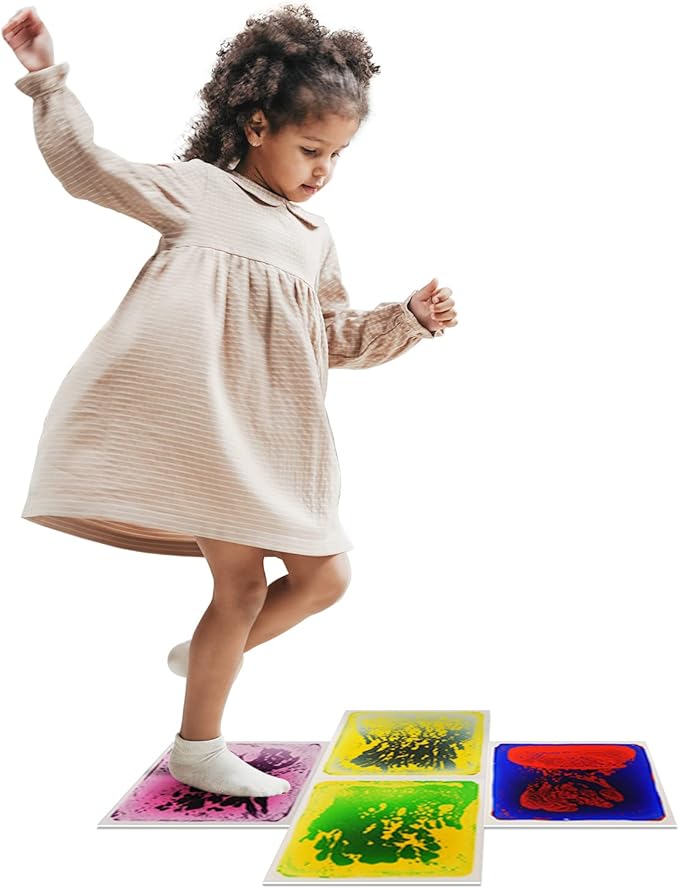 • Colorful Sensory Tiles: Bright cosmic liquid colors change that move with every step, jump, dance, or hop ;keep the mind active, prevent getting bored and help to concentrate.