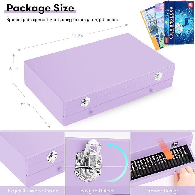 • 【Safe Art Kits】Made with quality materials, this art drawing kit is safe and no harm for kids and adults. All of the crayons, pencils, markers and pastels in this art kit are safe and non-toxic, conforms to ASTM D4236. Safe art kits to use for any level of artist. Perfect kids art kit, art set, art supplies kits.