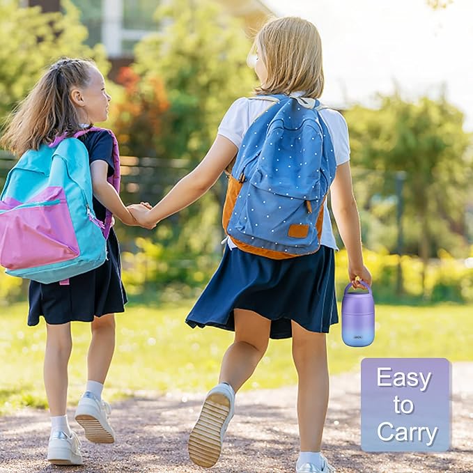 • Our insulated food jar has a unique hidden handle that can reduce the volume of the jar and save more space for you. It fits perfectly in school bags and boxes. The hidden handle could also avoid accidentally opening the lid while carrying school bags.