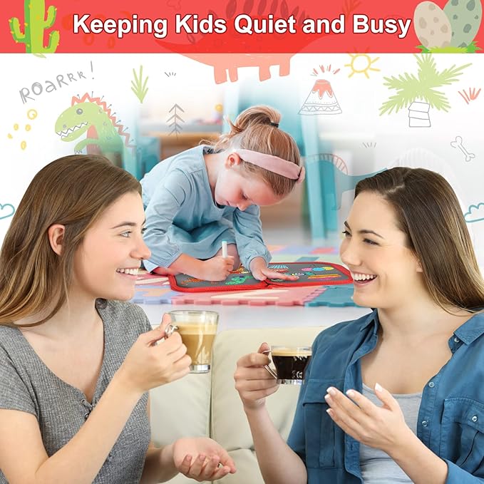 • ๐ŸŽจChildrens Drawing Magic Book--Kids Erasable Doodle Book Set is 8.6*8.2*0.7 in. Easy to store and carry, perfect for children's school bags. Keep your kids quiet and busy while you travel and enjoy your trip to the fullest!