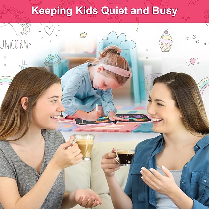 • ๐ŸŽจChildrens Drawing Magic Book--Kids Erasable Doodle Book Set is 8.6*8.2*0.7 in. Easy to store and carry, perfect for children's school bags. Keep your kids quiet and busy while you travel and enjoy your trip to the fullest!