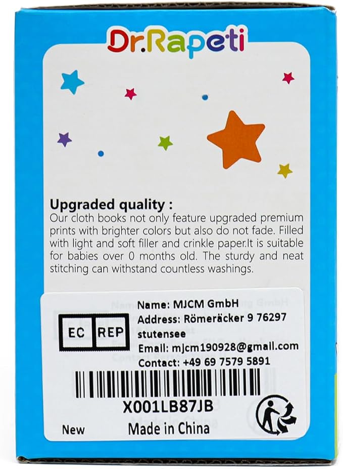• Gift Choice: The size of these soft books is 4.3x4.5 in, proper size for baby to grab and hold. You can use them as bath toy for your baby since it’s washable. Dr.Rapeti soft cloth books set is a nice gift choice for baby shower, birthday and special day