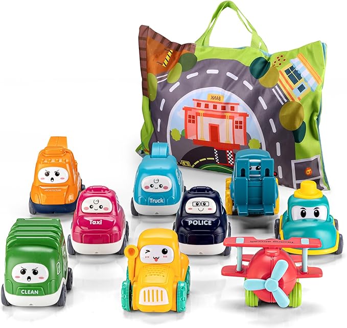 ALASOU 9 PCS Baby Cranes Car Toys with Playmat/Storage Bag|1st Birthday Gifts for Toddler Toys Age 1-2|Baby Toy for 1 2 Year Old Boy|1 2 Year Old Boy Birthday Gift for Infant 12 18 Months