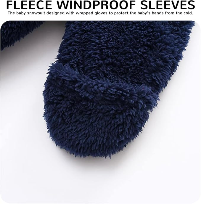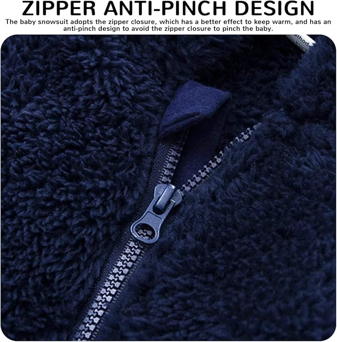 • ❤♥Material: This baby snow suit made of high quality polyester fiber, double lining, fine polyester fiber cares for baby's delicate skin. The newborn winter outfit hoodie whole body jumpsuit design, keeps the baby's head and ears inside and warm when outing. The toddler boys & girls snow suit accompanies the baby through the cold winter.