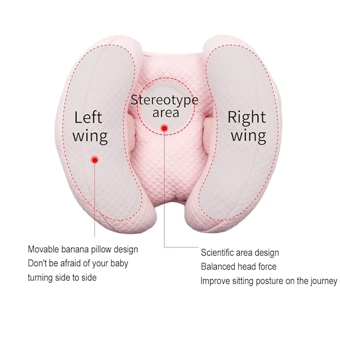• 2 in 1 Detachable Design - The banana shape of the baby head pillow on both sides can be dismantled or adjusted to a suitable size to protect the baby's neck and head, suitable for strollers