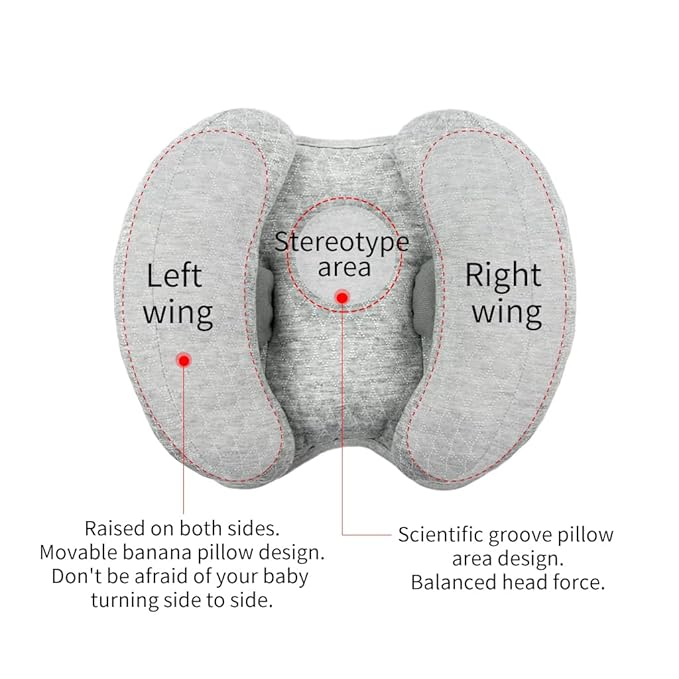 • 2 in 1 Detachable Design - The banana shape of the baby head pillow on both sides can be dismantled or adjusted to a suitable size to protect the baby's neck and head, suitable for strollers