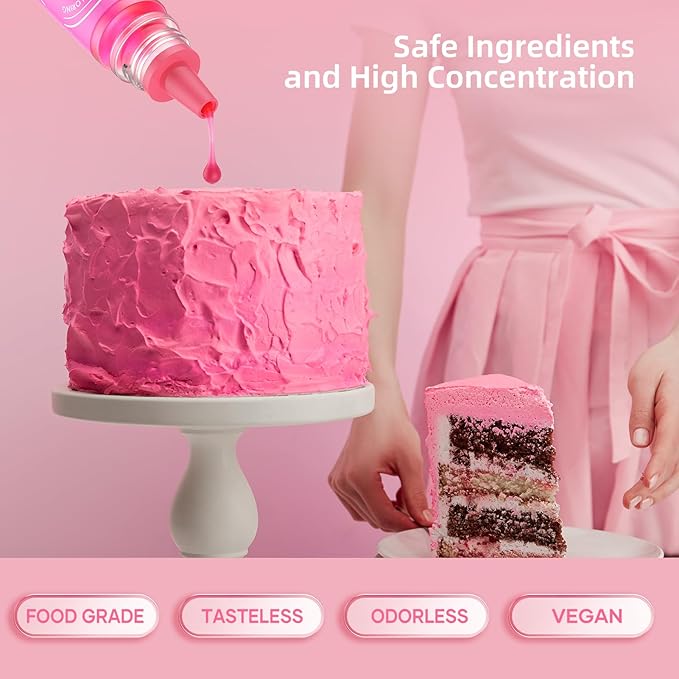 • Strong Tinting Strength - With upgraded highly concentrated formula water based texture,a little of these colors go a long way.The finished food is bright and rich in color, uniform and delicate.Whatโ€™s more, the liquid food color will not evaporate with moisture when heated or frozen. This food coloring also can be mixed together to create new shades