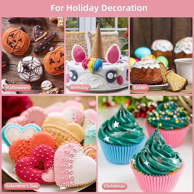 • Easy to Use - Our water-based food coloring is easy to mix with your food project. Upgraded bottle design with leak proof lid, make it easy to control your drops so that you can get the perfect shade every time.With the upgrade, our color set lasts for a long time without settling, so you don't need to shake it, just squeeze it through the bottle into the food you want to mix.Both beginners and professionals can enjoy the fun of DIY desserts