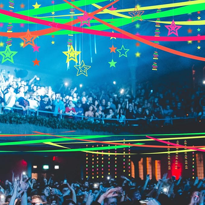 • Easy to use and decorate: The Glow Party streamers with bright colors are suitable for you to make DIY decorations. They can decorate your ceiling, door, window, book shelf, porch, garden, yards and other places. They are bright under daylight and glow only under Specific UV light, which Will Bring You an Amazing and Fun Neon Party.