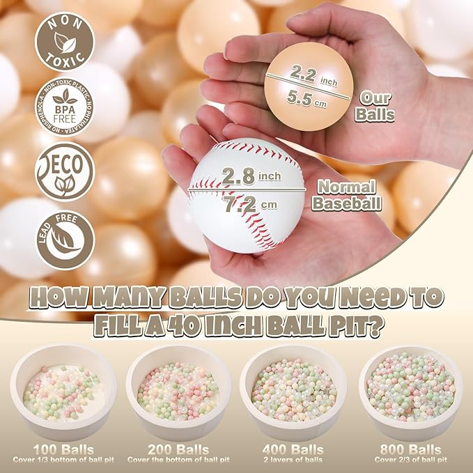 • PACKING - 100 pcs pack for home use. Great for filling any play tent, playpen, kiddie pool, baby playhouse, play yard, ball pit, and bounce house. Great photo prop for dogs, cats, pets as well. Can use it at parties, backyard, parks, playgrounds, day care, school, carnivals.