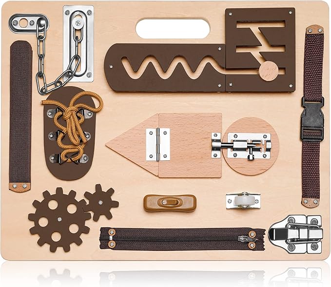 • Perfect Gifts for Your Little Boys and Girls: Letโ€™s enjoy the time with your family by using our Montessori busy board that full of challenges and can keep your kid interested. A great gift choice for birthdays, Christmas, holidays, family gatherings, Children's Day, carnival prize and contest presents to your preschoolers. Ideal board for developing creative and critical thinking through playing, also enhancing children's dignity and confidence by solving problems.