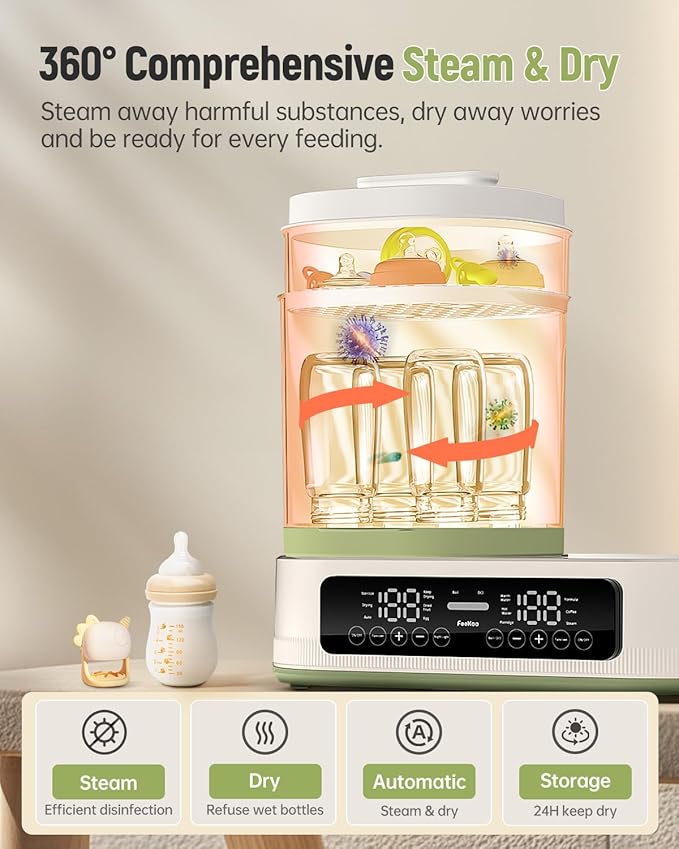 • 【All-in-One Solution】Simplify parenthood with our multi-functional bottle warmer, bottle sterilizer and dryer, and electric kettle combo. From newborns to toddlers, no need to buy separate devices for each task, this versatile duo is designed to meet all your feeding needs. Feekaa powerful combination saves money, time, countertop space, and effort, giving you more moments to cherish with your baby.