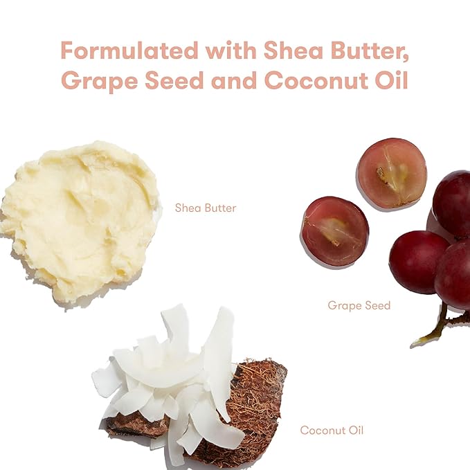 • COCOCNUT OIL, SHEA BUTTER + GRAPESEED: Gentle emollients that keep moisture on lock and strengthen the skinโ€™s natural barrier
