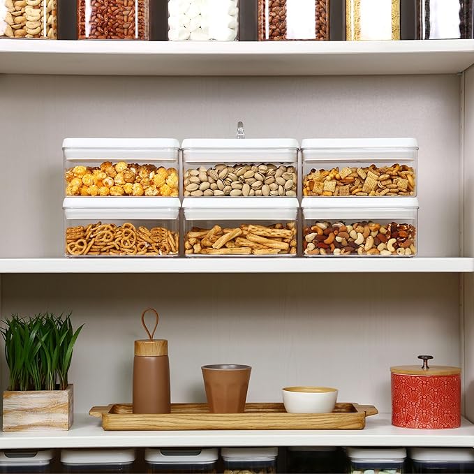• AVAILABLE IN VARIOUS SIZES & SHAPES: The Felli Flip Tite container provides a wide variety of sizes and shapes, each designed to accommodate different types and amounts of food. The 4” REGULAR & RECTANGULAR sizes are ideal for small kitchen counter pantry organization, and their design ensures easy handling and pouring. The 5" LARGE size is perfect for storing powders that require scooping. Finally, the 6” XL size is specifically designed for bulk storage, making it versatile for various storage needs.