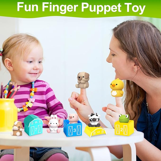 • Fine Motor Skills Developing:Each animal toy with a suitable size hole in the bottom, which fits kid's finger and can be used as finger puppets to have fun interactive game, exercising the hand-eye coordination.It is so fun for toddlers to put in/take out the animals and open/close the barns, this process will develop their fine motor skills and increase communication with their parents.