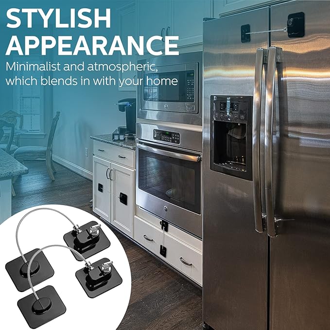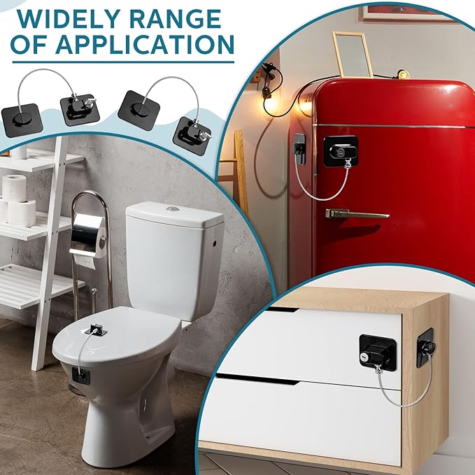 • Reliable and Sturdy Material: refrigerator door lock is made of ABS, stainless steel wire, zinc alloy, backed with adhesive backing, strong and reliable; The surface of the multi-strand steel wire is covered with a protective layer, smooth surface, not easy to fall off and does not scratch hands