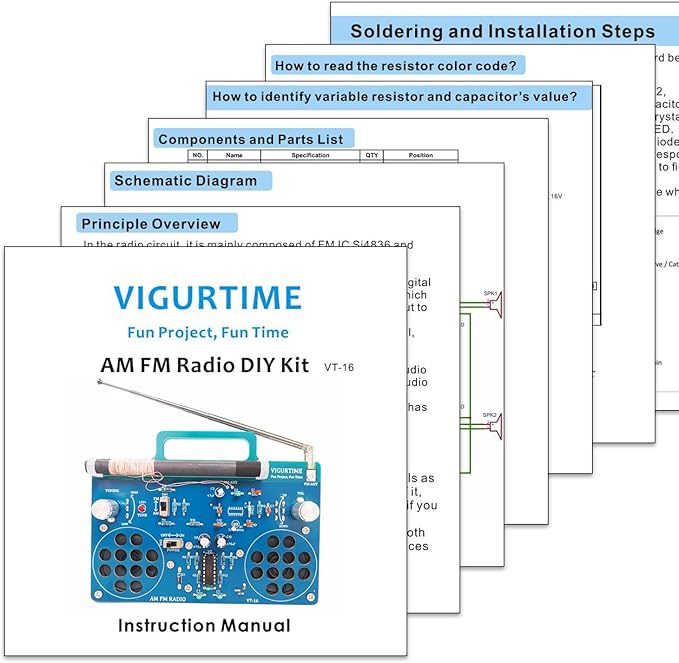 • A Great STEAM Project - Complete parts kit and full color instruction manual, let you or your kids can learn how to solder, get familiar with more components, learn radio schematics, and more. Not only is it a great soldering project kit, it's also a really cool radio kit when done!