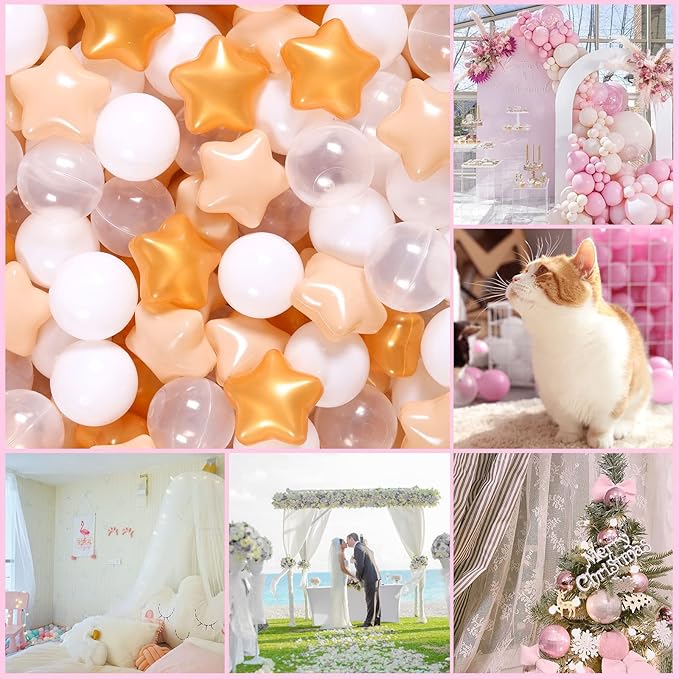 • Color : 100pcs Pearl Gold+beige+white+clear Star Balls