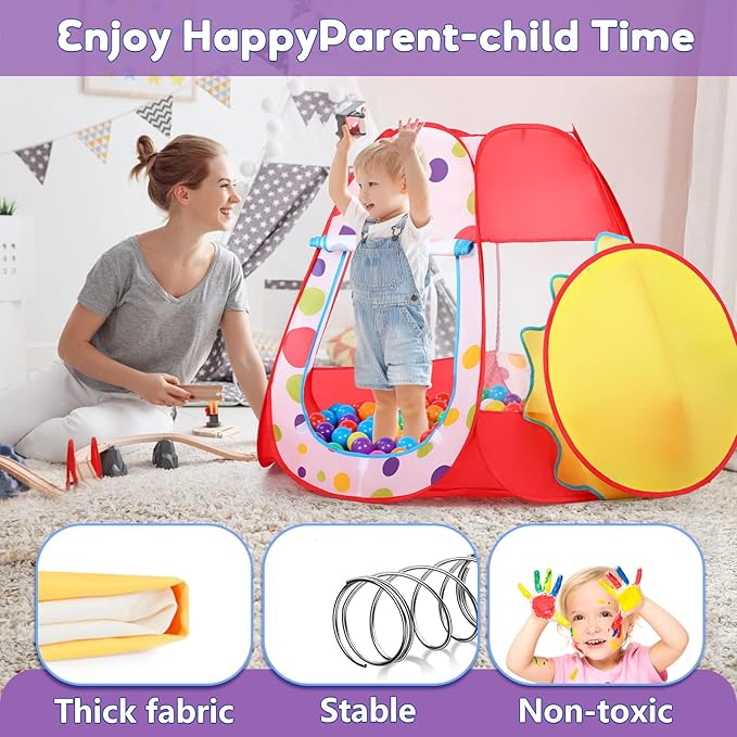 • Indoor Outdoor Play: It is lightweight and portable that can be also taken anywhere. You can put this kids tents in living room, yard, garden, party and more occasions. In addition to the attached pit balls, dolls, toys and other decorations can be also put into this toddler tent. It is the perfect partner to play with the babies