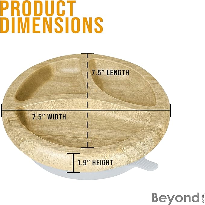 • EASILY FITS IN ANY HIGHCHAIR: Ergonomically designed for children at least four months of age, our baby bamboo plate has a convenient size that fits all brands of high chair trays. It is intended to encourage toddler self-feeding without (so much of) the mess.