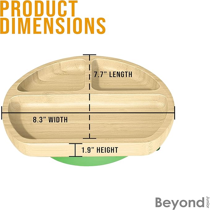 • EASILY FITS IN ANY HIGHCHAIR: Ergonomically designed for children at least four months of age, our baby bamboo plate has a convenient size that fits all brands of high chair trays. It is intended to encourage toddler self-feeding without (so much of) the mess.