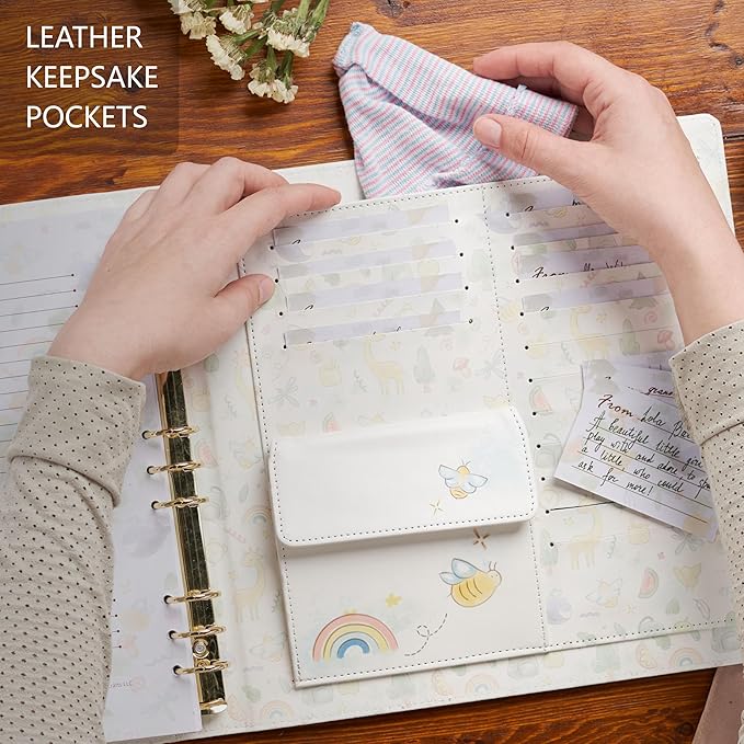 • Leather Surface, Exceptional Quality โ€“ The baby journal memory book cover and outer surface of the baby keepsake storage box are made of faux leather of exceptional quality and durability. The interior of the baby keepsake box is upholstered in an elegant gentle turquoise flannel fabric. Beautiful baby album and memory book set and a shower gift for girls and boys.