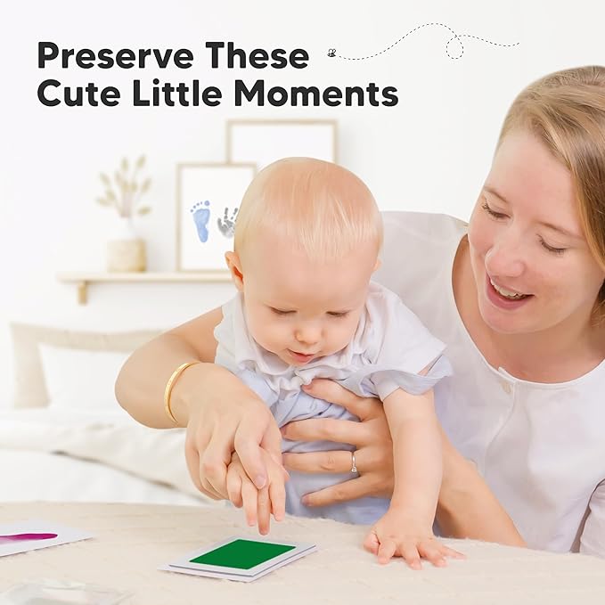 • No Mess, No Residue - Designed to create your baby's hand and footprints without leaving ink residue on your baby’s hands and feet. Our clean touch ink pads use a “zero ink contact” imprinting method to allow beautiful stamping of your baby’s hands and feet on art cards, memory book journals and other paper-based baby keepsakes. Mess free ink pad for babies.