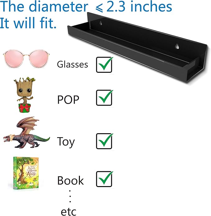 • Size&Packed: Depth is 2.3โ€ณ, overall size 15โ€ณ x 2โ€ณ x 2.3โ€ณ, total 4 packs.RORKIM has individually wrapped all clear wall shelves in protective film to ensure our clear acrylic racks are scratch-free.