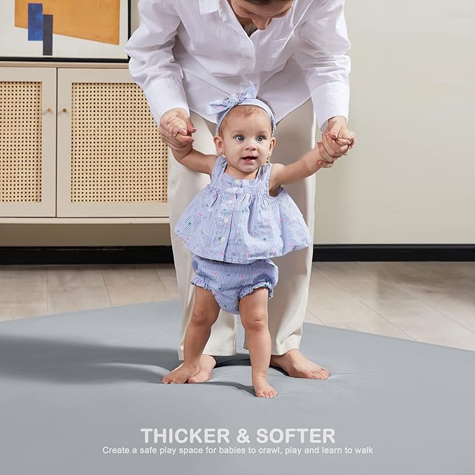 • THICKER & SOFTER - The baby play mat can be up to 1.18 inches thick when fully inflated, high-resilience foam filling provides extra comfort for your baby's crawling, rolling, sitting up & first steps.
