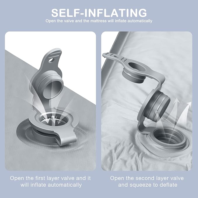 • SELF-INFLATING - Designed with two fast flow valves to quickly and efficiently inflate the foam pad to optimal firmness. No air pump required.