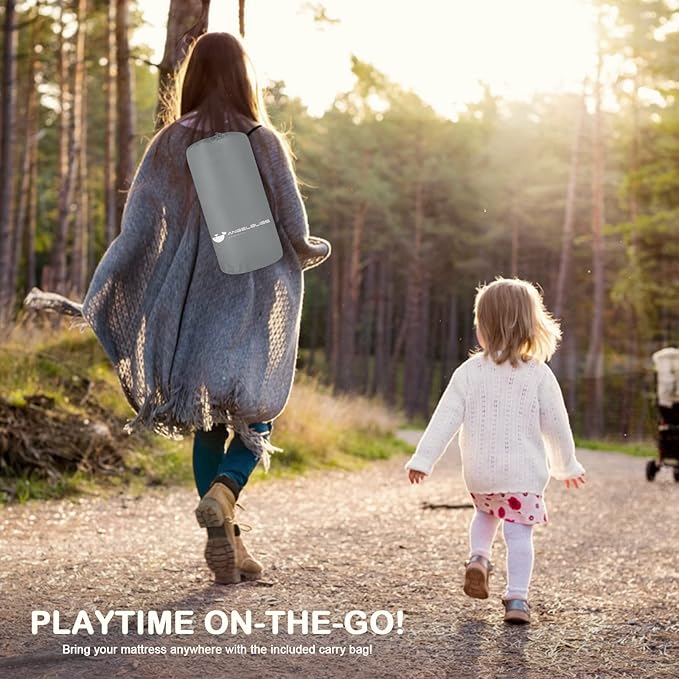 • THICKER & SOFTER - The baby play mat can be up to 1.18 inches thick when fully inflated, high-resilience foam filling provides extra comfort for your baby's crawling, rolling, sitting up & first steps.