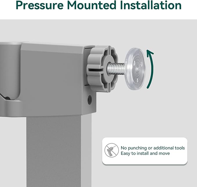 • EASY TO SET UP: Simple and quick pressure installation, not require additional tools and no holes in the wall. It is equipped with an auto-close feature that gently closes the door and a stay-open feature that keeps it open. The baby gate can be opened easily with one-hand operation even while holding a baby.