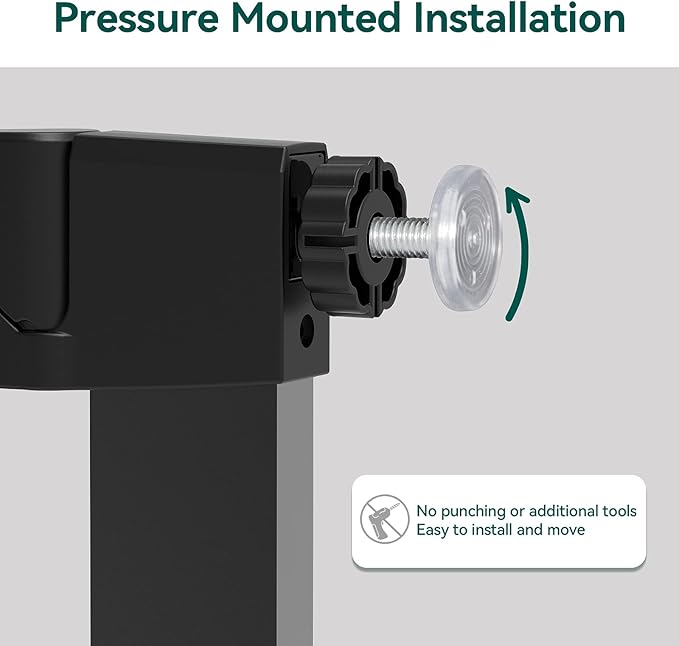 • EASY TO SET UP: Simple and quick pressure installation, not require additional tools and no holes in the wall. It is equipped with an auto-close feature that gently closes the door and a stay-open feature that keeps it open. The baby gate can be opened easily with one-hand operation even while holding a baby.