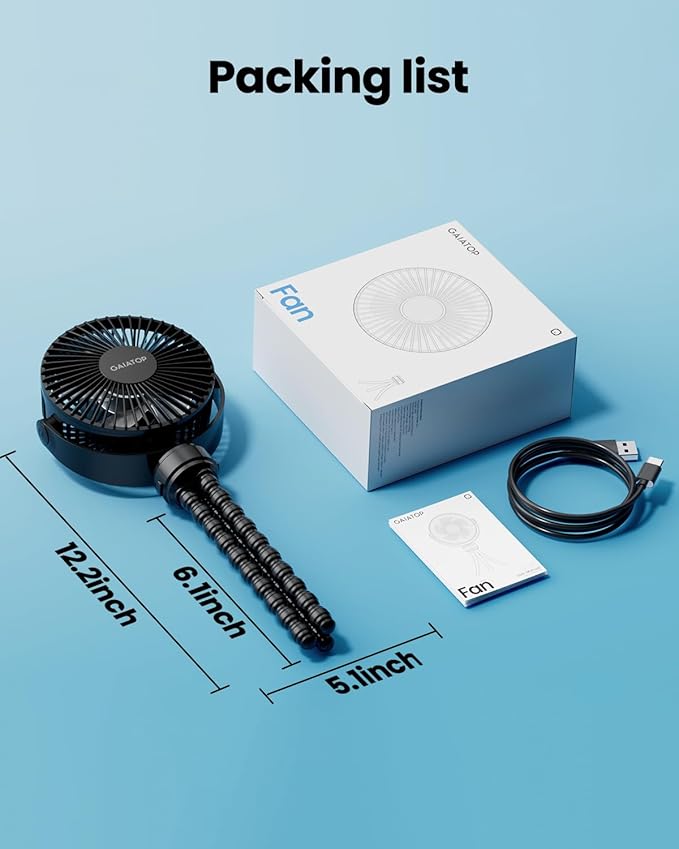 • Mini Size with Rotation Design: The mini fan is only 5.61*2.51*6.49inches, 0.52lb; 360° of horizontal rotation and 210° of vertical rotation, You can always find your favorite angle to enjoy the comfort of the wind